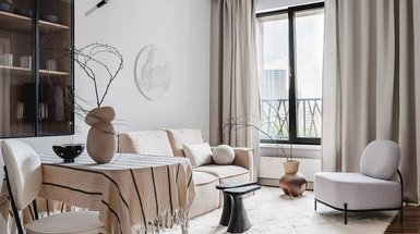 Дизайнер Роман Татарский разработал дизайн-проект для однокомнатной квартиры под сдачу в аренду. Заказчик хотел организовать комфортное пространство для отдыха, увеличить количество мест хранения и просил использовать универсальные решения, которые понравятся большинству потенциальных арендаторов. Роман выбрал нейтральные светлые оттенки и добавил интерьеру ярких синих красок.