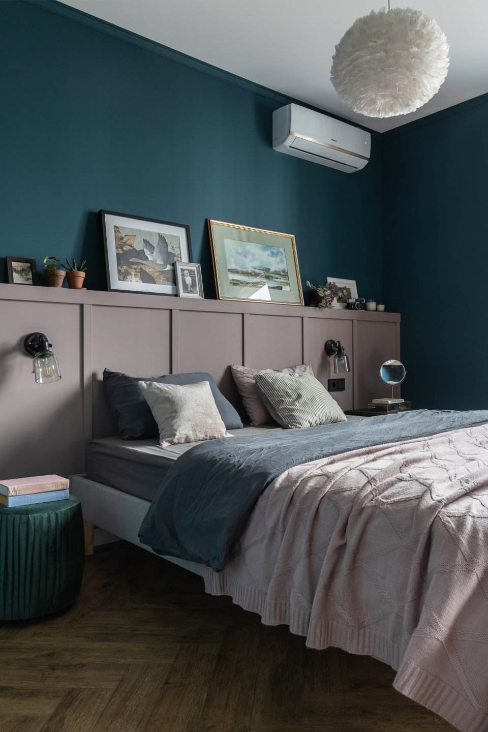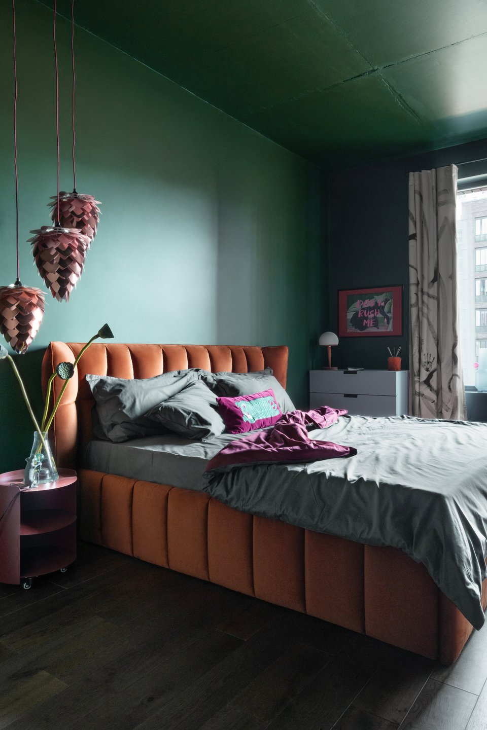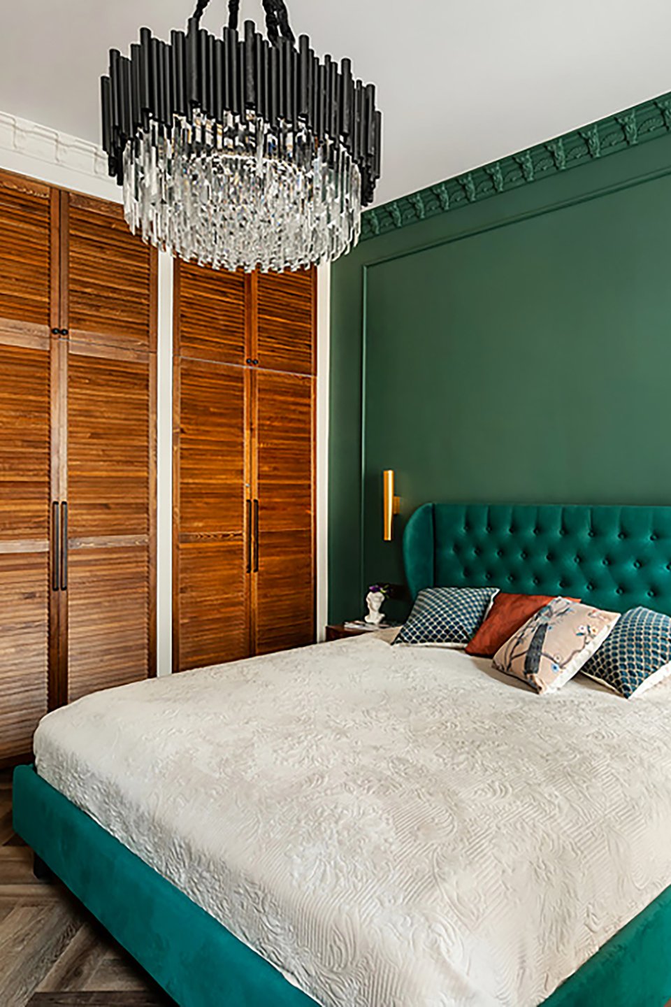 Темная спальня в изумрудном цвете