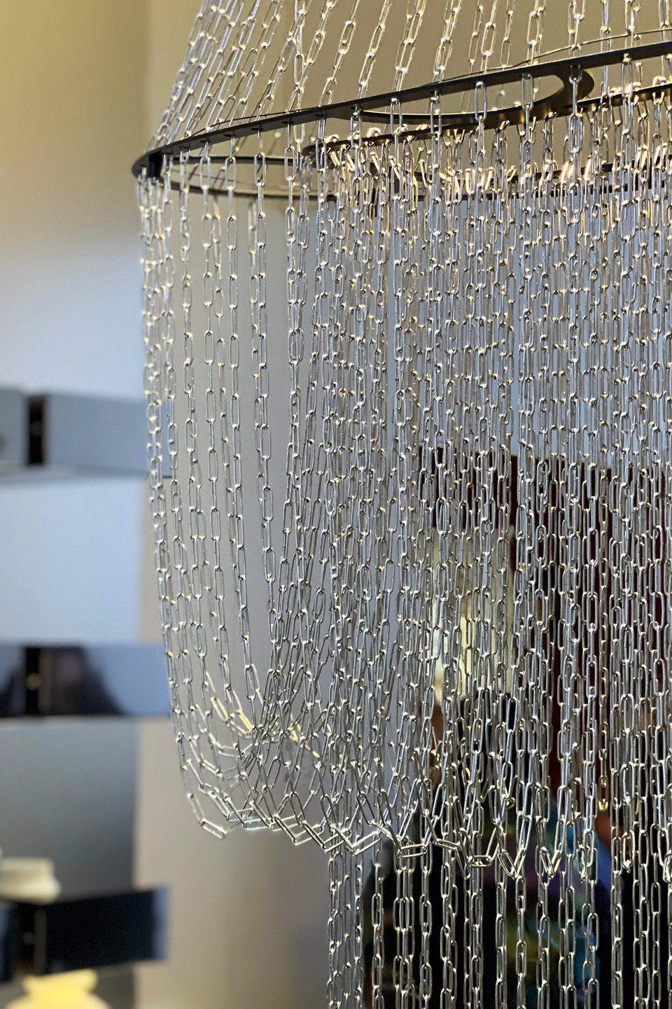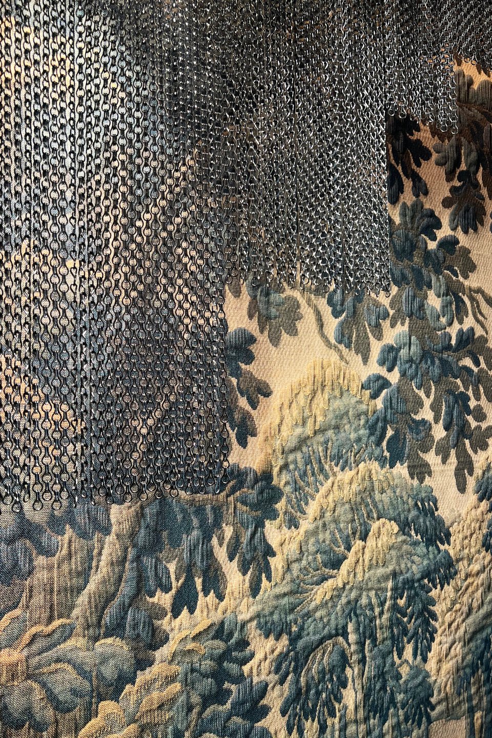 Среди повторяющихся визуальных мотивов на выставке особенно выделялся образ цепи. Он появлялся в текстиле, металлических элементах, декоративных конструкциях. Цепь здесь не орнамент, а символ связи, прямое визуальное отражение основной идеи выставки: прошлое и будущее не противопоставлены, а связаны.