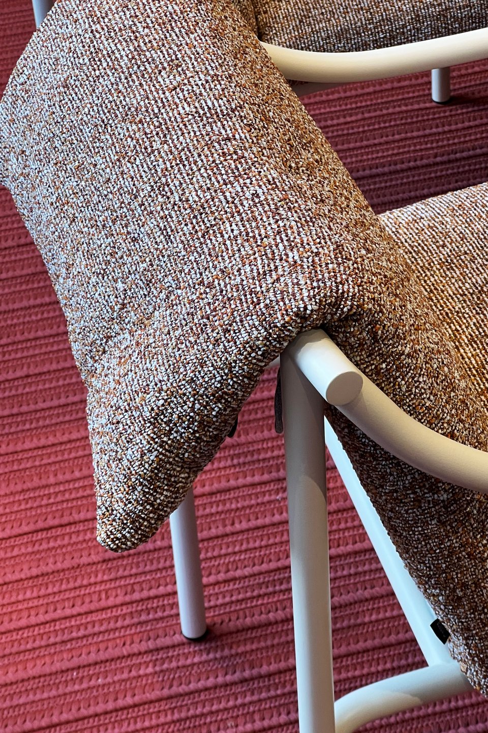 Терракота — заменяет холодные серые и бежевые тона, работая в диапазоне от светлой охры до глубокого кирпичного. Она создает теплый, обволакивающий фон, апеллируя к памяти о земле, глине и ручной работе, что формирует чувство защищенности и вневременности. Этот цвет стал визуальным выражением темы «Прошлое открывает будущее», связывая натуральные материалы с современными формами.