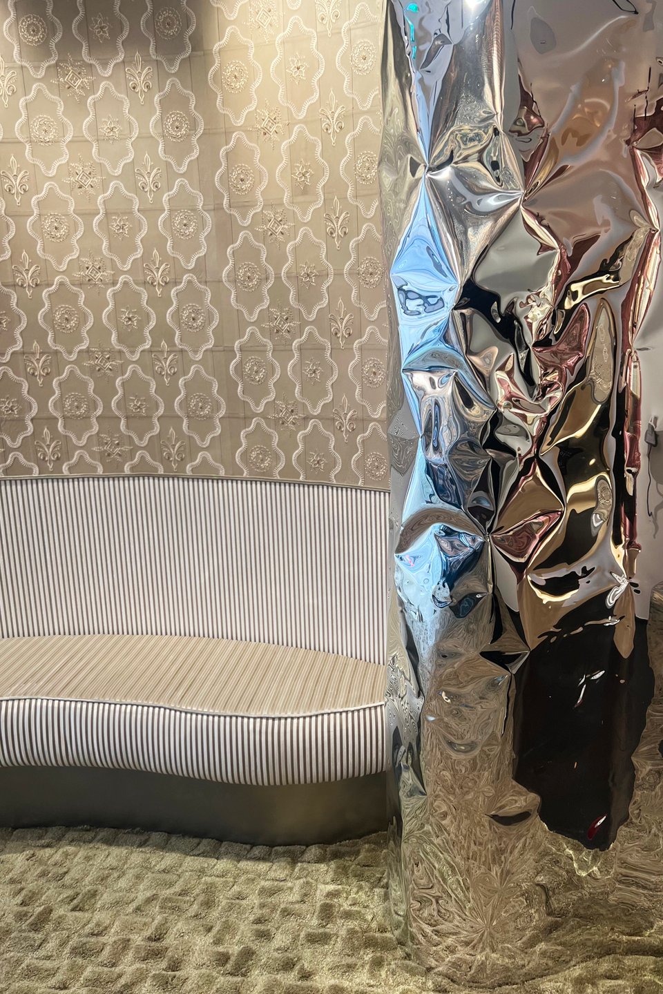 Пространство What's New? In Decor от Элизабет Лериш это визуальный манифест: настоящее рождается из диалога с прошлым, а будущее — продолжение культурной памяти. Главный принцип — нелинейность времени: разные эпохи сосуществуют в одном моменте, порой даже в рамках одного объекта. Сила подхода знаменитой француженки — в его безупречной практичности: это элегантная формула для создания «исторической глубины» по требованию. Ее зона — мастер-класс по тому, как, смешивая археологическую патину с современной абстракцией, создавать вневременные объекты желания уже сегодня.
