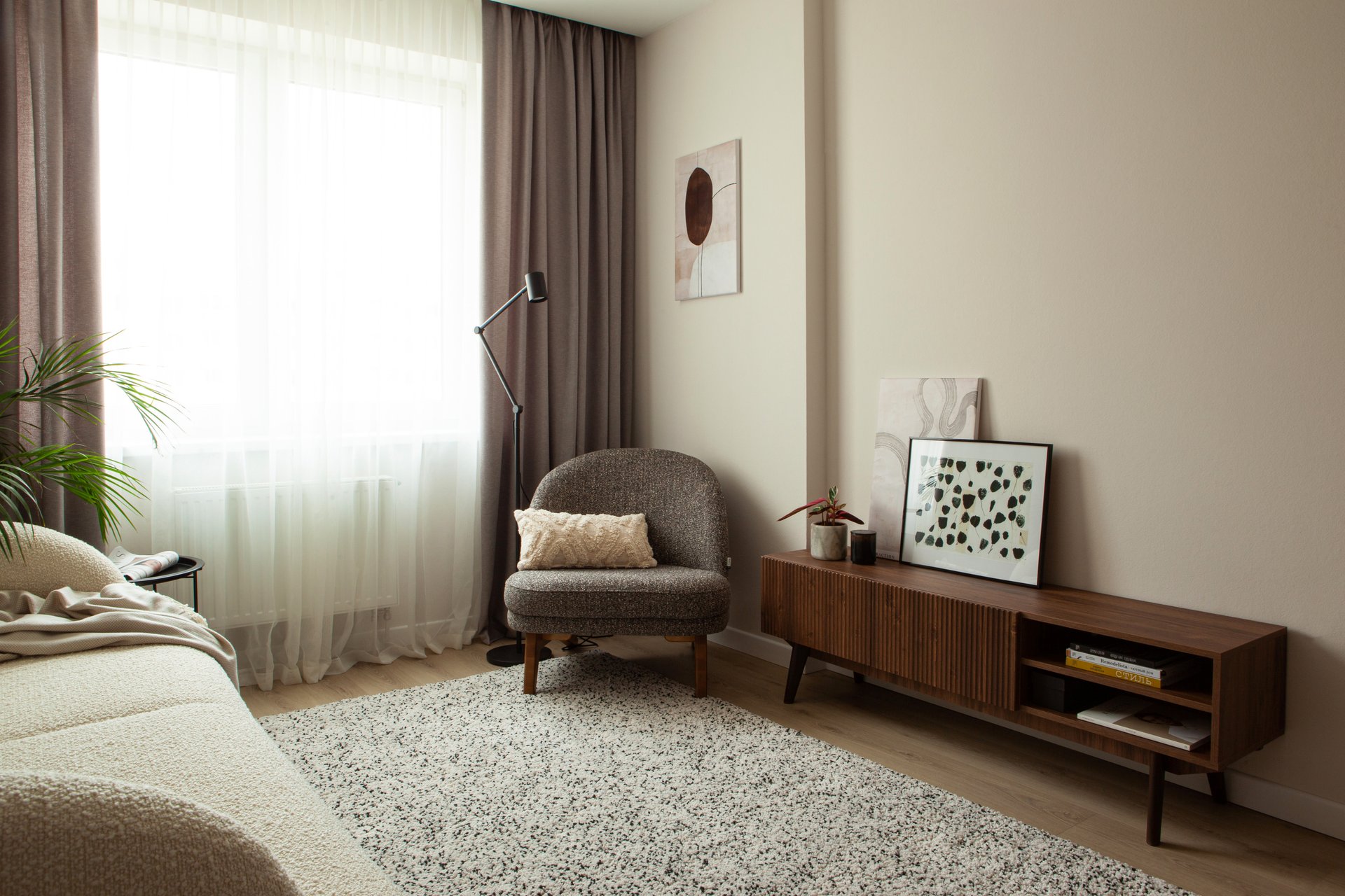На фото: евродвушка 42 кв.м, ЖК «Френдс». В кадре тумба Шелби и журнальный стол Кайт — все от divan.ru. Дизайнеры: Анна Протасова и Валерия Майер, студия AV interiors design; фотограф: Артем Кротов