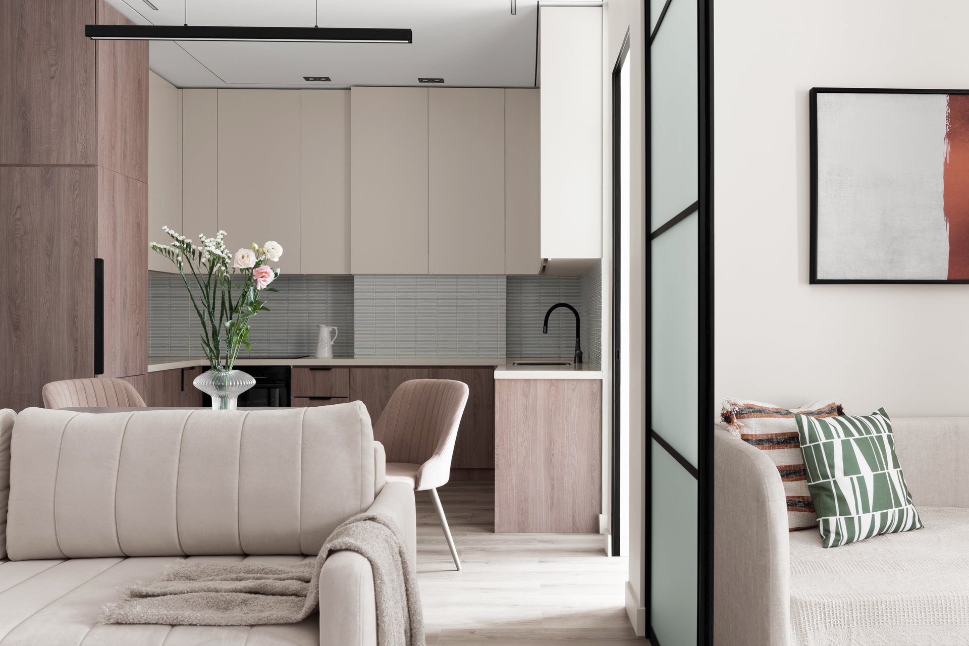 На фото: интерьер квартиры 50 кв.м, ЖК Jer Ana. Дизайнер: Яздурсун Хождабердыева; фотограф: Роман Якунин