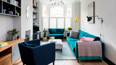 В интерьер в стиле мидсенчури подойдут прямые диваны ярких цветов — желтые, синие, изумрудные. Чаще всего это варианты на ножках или раскладные, простые по форме.