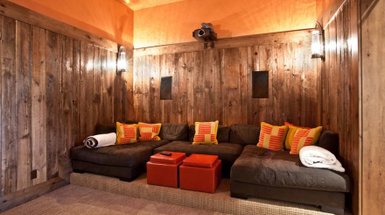 Американский стиль — это тяжелая громоздкая мебель с кожаной обивкой и грубыми прагматичными деталями: потолочными балками, камином из фактурного камня, шкурами на полу и оружием на стенах. Доминируют бежевые, терракотовые, пастельные желтые и оранжевые оттенки.