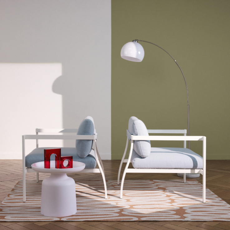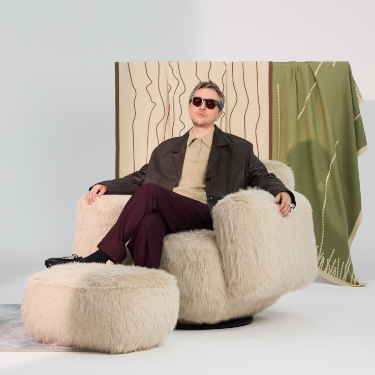 Уникальный дизайн, разработанный Димой Логиновым, сочетает плавные формы и тактильно приятные фактуры. За счет плотной велюровой ткани создается меланжевый эффект и спокойный матовый блеск, который подчеркивает округлые линии мебели.