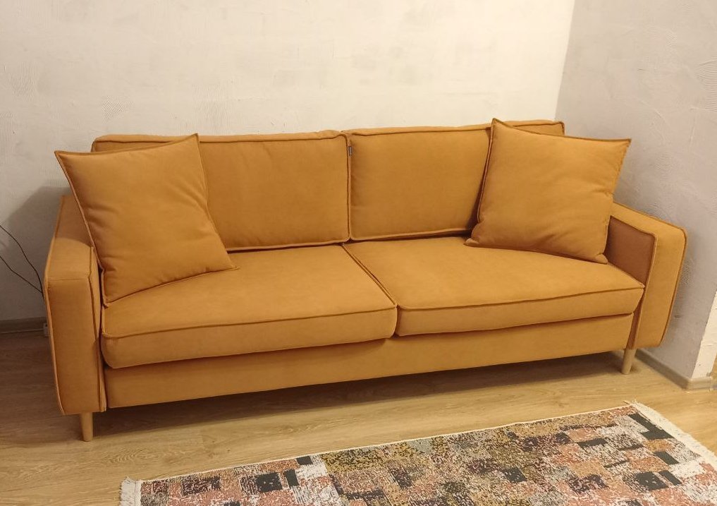 Отличный диван. Заказали в цвете Only 240. Думали, что будет ярко, но диван хорошо вписался в интерьер, не выглядит кричащим. Ткань качественная, консультант в магазине (были в Невском Центре) посоветовал выбирать из палитры Only: легко ухаживать и не пострадает от собаки. Дали образцы ткани. Советую посмотреть образцы в своей квартире, потому что восприятие цвета сильно меняется в зависимости от освещения. Там же, в магазине, сказали, что в сравнении с другими моделями это довольно плотный (жесткий) диван, что хорошо.