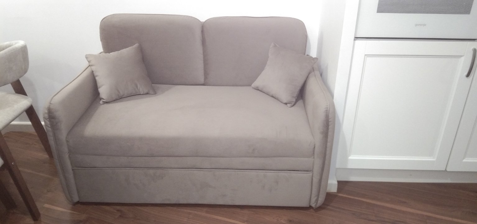 Диванчик маленький,да удаленький,если разложить совсем как большой .можно перемещать,меняя интерьер .