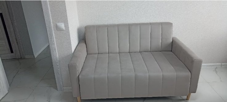 Хороший диван, компактный, комфортный, твердый, как и хотелось. Поселился на балконе. Собрала быстро, несмотря на то, что он достаточно увесистый. Доставка в срок, подняли, аккуратно занесли. Как и писали в других отзывах, раскладывается с усилием, но, возможно, это исправит смазка. Цвет велюра на свету отливает синевой (на фото видно). Тактильно приятный, соринки и шерсть легко почистить. Кот оценил)