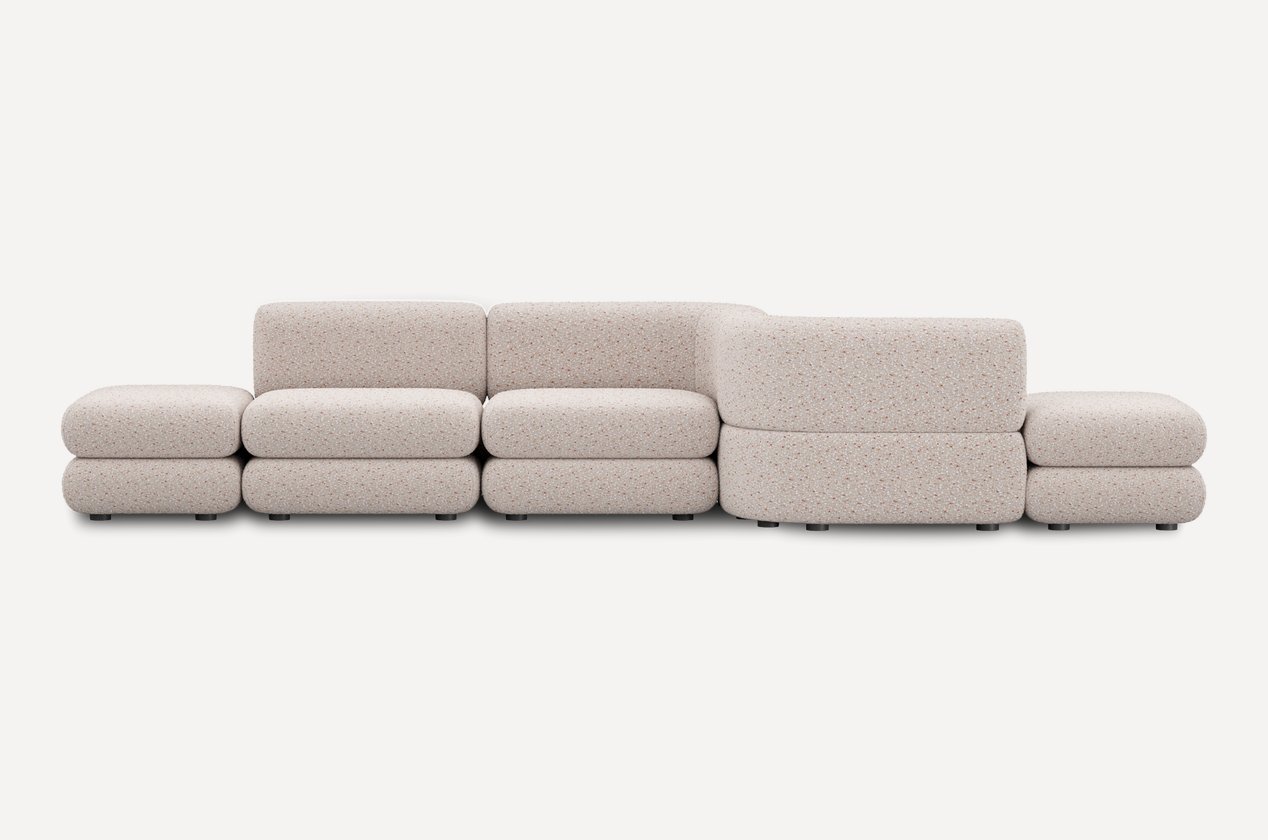 Уникальный дизайн, разработанный Димой Логиновым, сочетает плавные формы и тактильно приятные фактуры. За счет плотной велюровой ткани создается меланжевый эффект и спокойный матовый блеск, который подчеркивает округлые линии мебели.