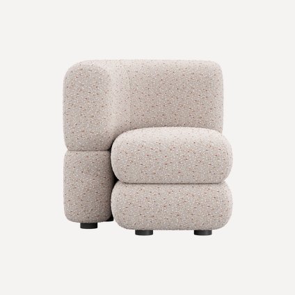 Уникальный дизайн, разработанный Димой Логиновым, сочетает плавные формы и тактильно приятные фактуры. За счет плотной велюровой ткани создается меланжевый эффект и спокойный матовый блеск, который подчеркивает округлые линии мебели.