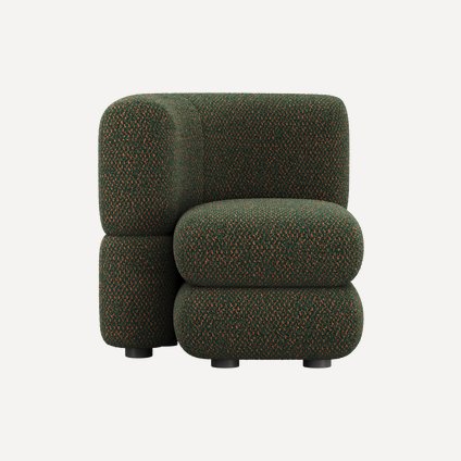 Уникальный дизайн, разработанный Димой Логиновым, сочетает плавные формы и тактильно приятные фактуры. За счет плотной велюровой ткани создается меланжевый эффект и спокойный матовый блеск, который подчеркивает округлые линии мебели.