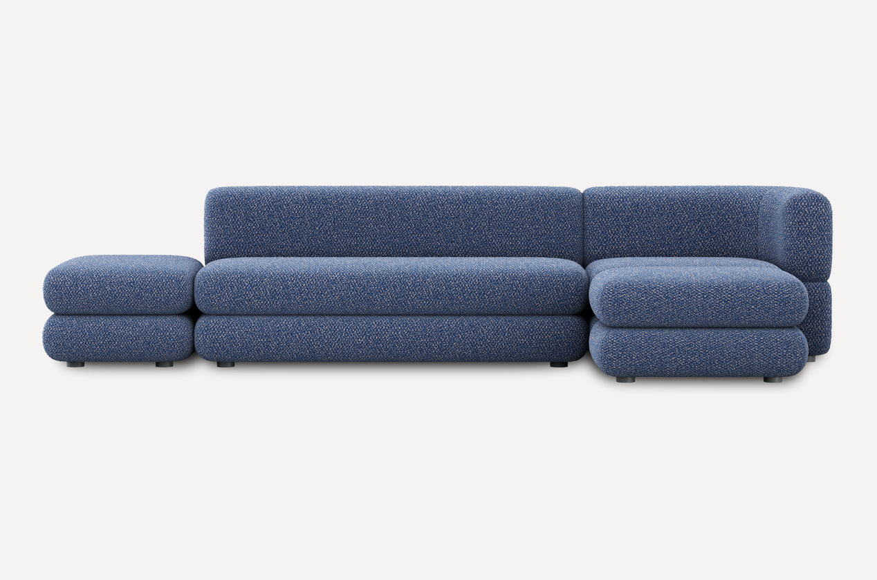 Уникальный дизайн, разработанный Димой Логиновым, сочетает плавные формы и тактильно приятные фактуры. За счет плотной велюровой ткани создается меланжевый эффект и спокойный матовый блеск, который подчеркивает округлые линии мебели.