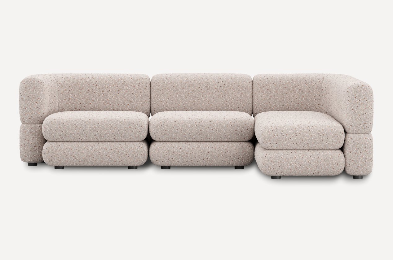 Уникальный дизайн, разработанный Димой Логиновым, сочетает плавные формы и тактильно приятные фактуры. За счет плотной велюровой ткани создается меланжевый эффект и спокойный матовый блеск, который подчеркивает округлые линии мебели.
