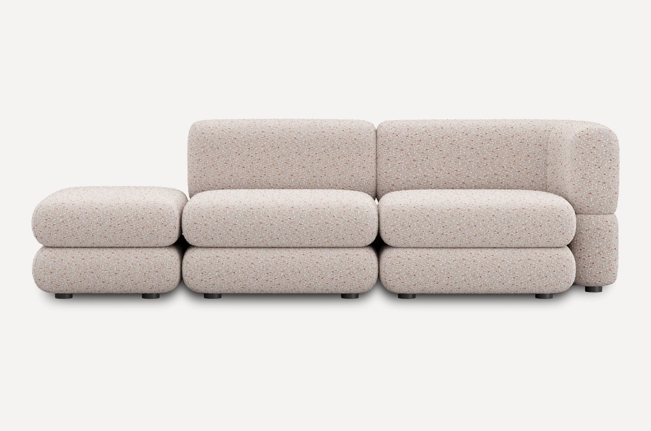 Уникальный дизайн, разработанный Димой Логиновым, сочетает плавные формы и тактильно приятные фактуры. За счет плотной велюровой ткани создается меланжевый эффект и спокойный матовый блеск, который подчеркивает округлые линии мебели.