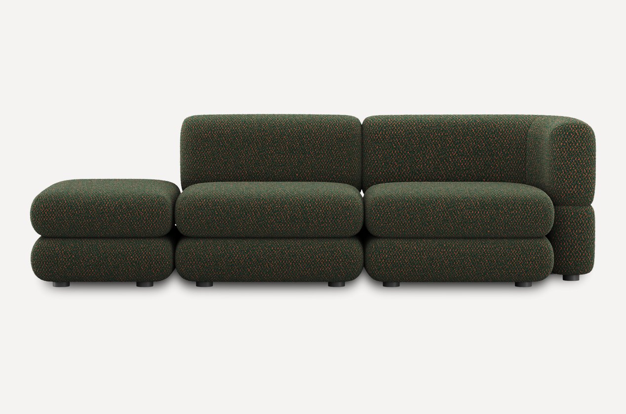 Уникальный дизайн, разработанный Димой Логиновым, сочетает плавные формы и тактильно приятные фактуры. За счет плотной велюровой ткани создается меланжевый эффект и спокойный матовый блеск, который подчеркивает округлые линии мебели.