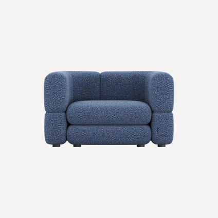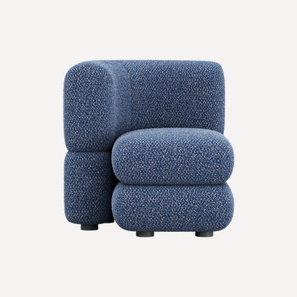 Уникальный дизайн, разработанный Димой Логиновым, сочетает плавные формы и тактильно приятные фактуры. За счет плотной велюровой ткани создается меланжевый эффект и спокойный матовый блеск, который подчеркивает округлые линии мебели.