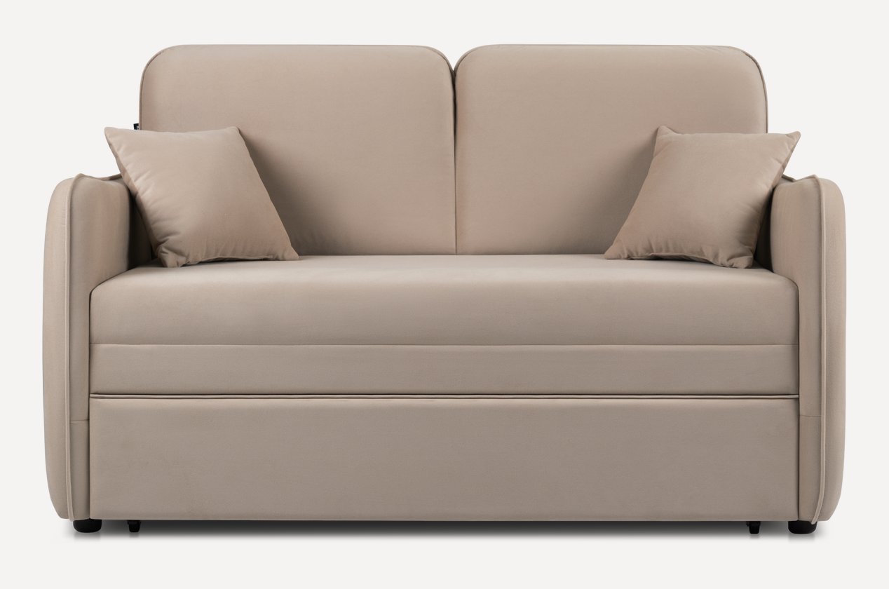Предельно простой в использовании механизм трансформации. Чтобы разложить диван, достаточно потянуть за петлю на подвижной платформе, выкатить ее до упора и развернуть матрас на всю длину спального места.