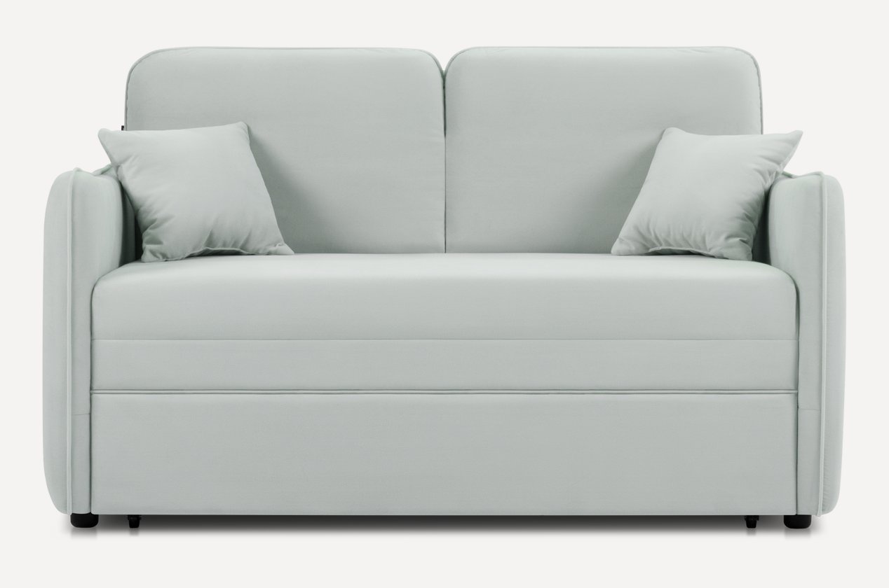 Предельно простой в использовании механизм трансформации. Чтобы разложить диван, достаточно потянуть за петлю на подвижной платформе, выкатить ее до упора и развернуть матрас на всю длину спального места.