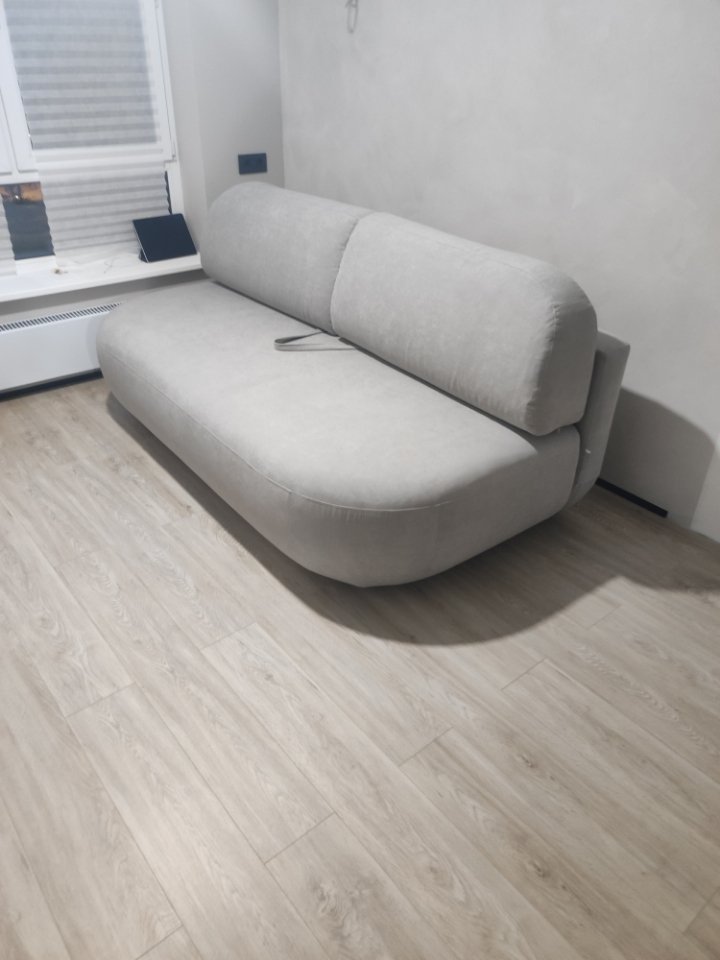 Заказал 4 таких дивана в цвете Вельвет Смоук к нам на базу отдыха Здесь живут Камни рядом с Карелией. Поделюсь с вами ощущениями.Внешний вид: 10/10 (Учитывая наше название и тот факт, что диван напоминает гальку, случился мэтч)Удобство: 10/10 (Довольно жесткое сиденье и очень мягкие подушки, долго сидеть на нем комфортно. Для сравнения мягкости подушек и сиденья сделал фото, где давил рукой на эти элементы с примерно одинаковым усилием)Материал: 10/10 (ткань нейтрального светло-серого цвета, хорошо чистится, приятная на ощупь. Качественный ППУ и блок независимых пружин в основании, неплохие дсп и двп в каркасе)Качество пошива и сборки: 7/10 (Только у двух диванов округлая форма, еще у двух присутствуют углы ППУ в скруглениях, чего быть не должно. Местами торчат нитки)Надежность конструкции: 5/10 (та часть еврокнижки, которая является опорой спинки и опускается вниз для формирования спального места, при размещении на ней человека (учитывая что 160*200 - двуспальное место, один из спящих почти наверняка окажется в этой части), стремится к своей изначальной вертикальной позиции, что может привести к паденю с дивана человека на пол и травмам. В конструкции необходимы доработки, необходим упор, предотвращающий откидывание детали. В остальном добротный и прочный каркас не вызывающий сомнений в своей прочности.Удобства сна на диване: */10 (индивидуально, для любителей жестких и средних матрасов будет идеально), но жалоб на жесткость не поступалоСервис магазина: 10/10 Быстрый заказ, изготовление и доставка. Упаковка заслуживает отдельной похвалы - будьте уверены, диван приедет к вам в целости.Для кого-то указанные недостатки могут быть значительными, однако для нас выбор был очевиден, аналогов с подобным дизайном и соотношением цена/качество просто нет. Мы и наши гости в восторге! Приезжайте к нам в Здесь живут Камни, чтобы оценить удобство и качество данного дивана перед заказом в Диван.ру. Удачных покупок!