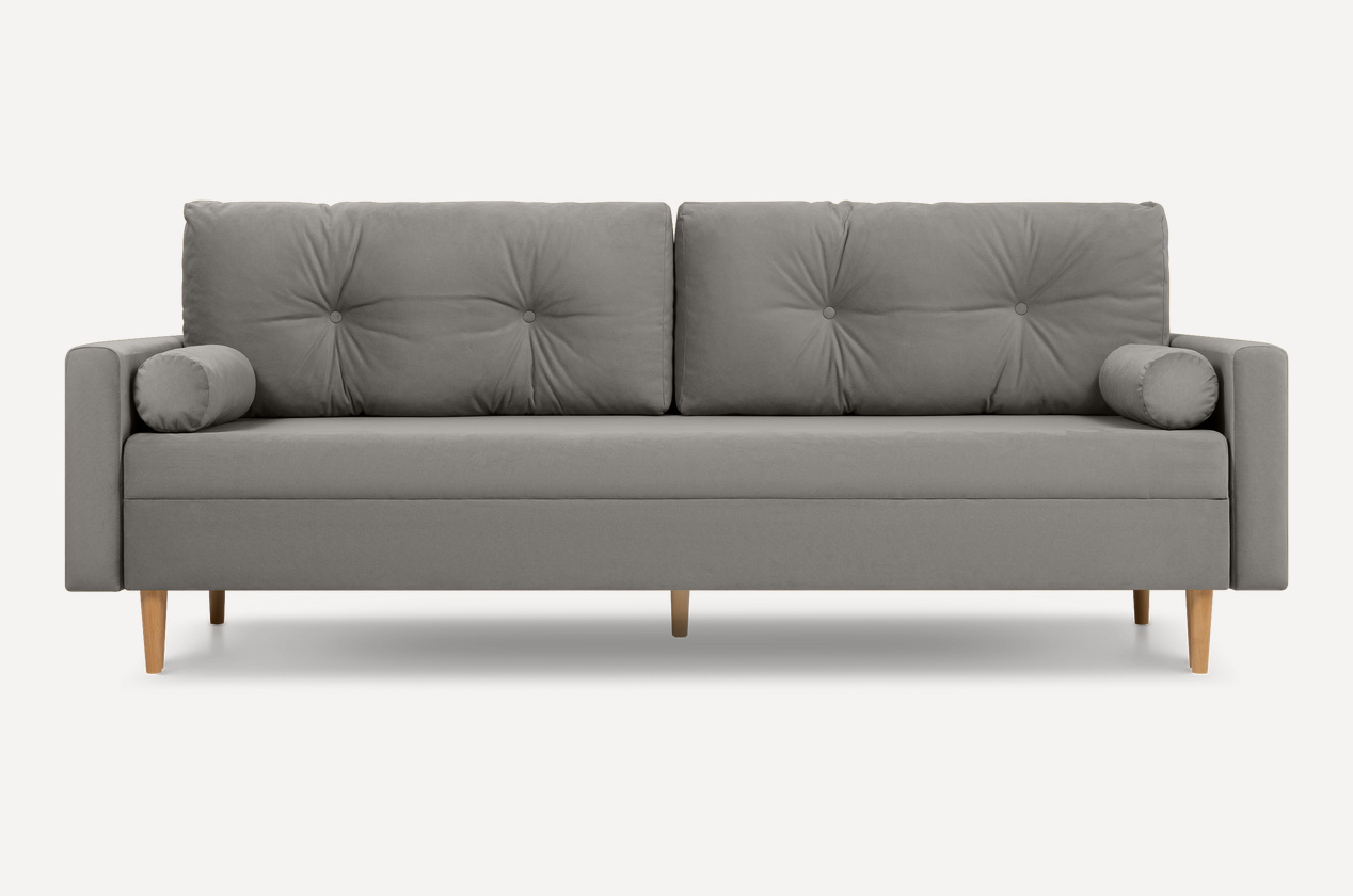 Ножки дивана выполнены из массива дерева. Такое дизайнерское решение является не только стильным акцентом любого интерьера, но и визуально делает модель легкой и воздушной. Высота в 15 сантиметров позволяет без труда осуществлять процесс уборки – под диваном свободно проедет любой робот-пылесос.