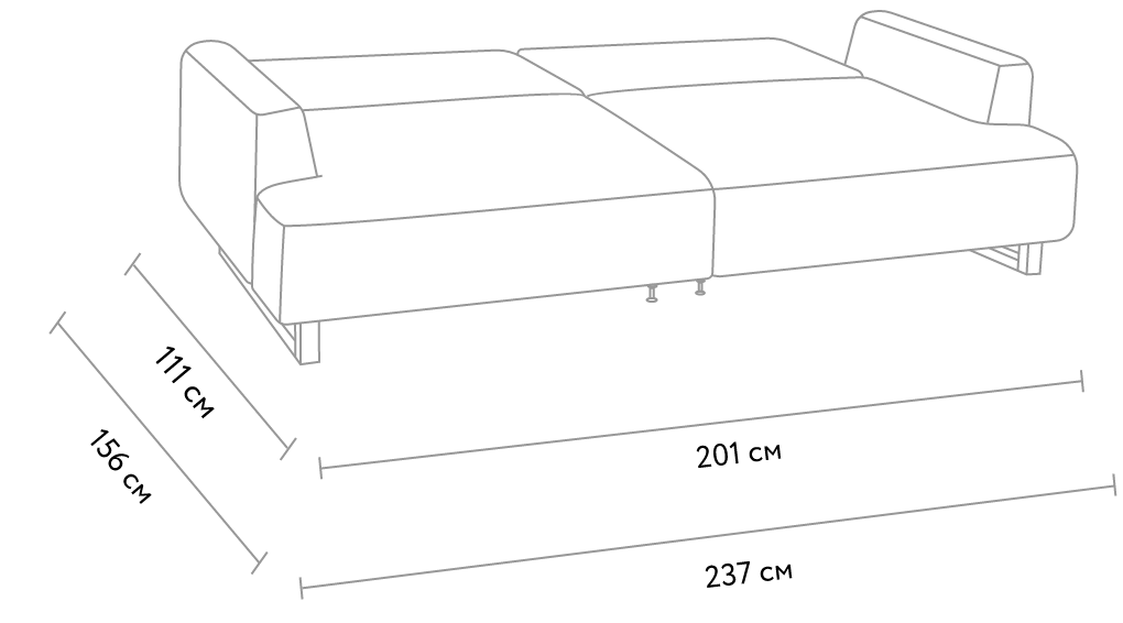 В разложенном виде: Длина 237 смхШирина 156 см