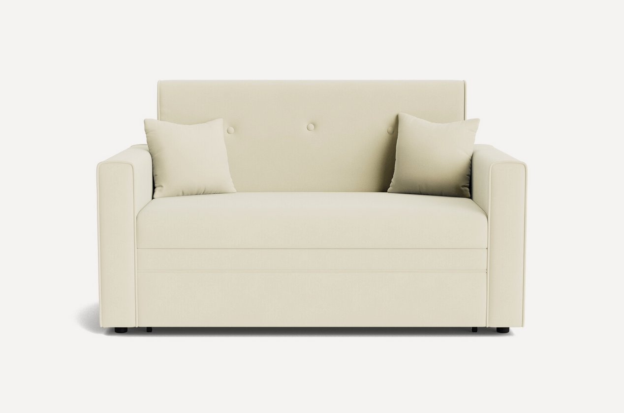 Предельно простой в использовании механизм трансформации. Чтобы разложить диван, достаточно потянуть за петлю на подвижной платформе, выкатить ее до упора и развернуть матрас на всю длину спального места.