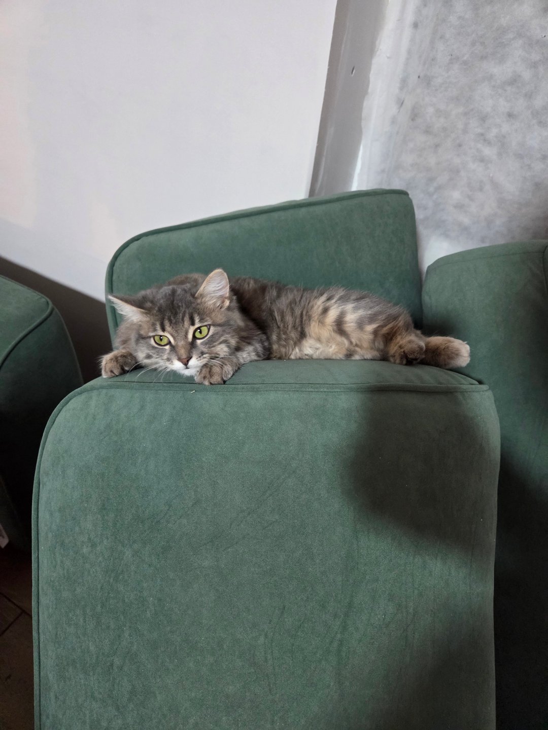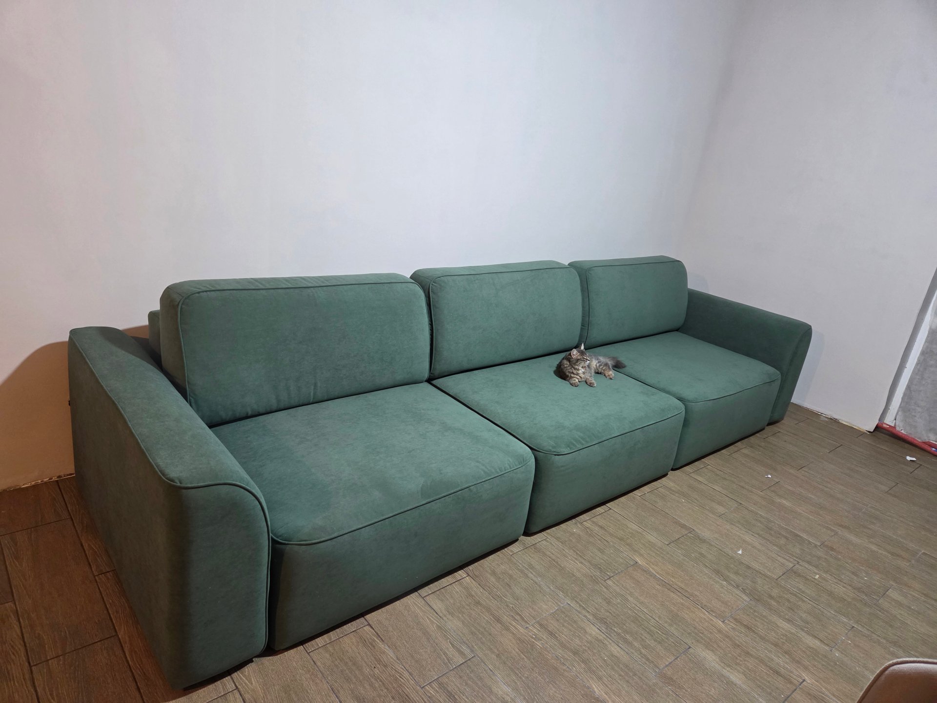 Отличный диван. В меру жёсткий. Цвет не вырви глаз, а приятный зеленый. Будто чуть припыленный. Мы довольны