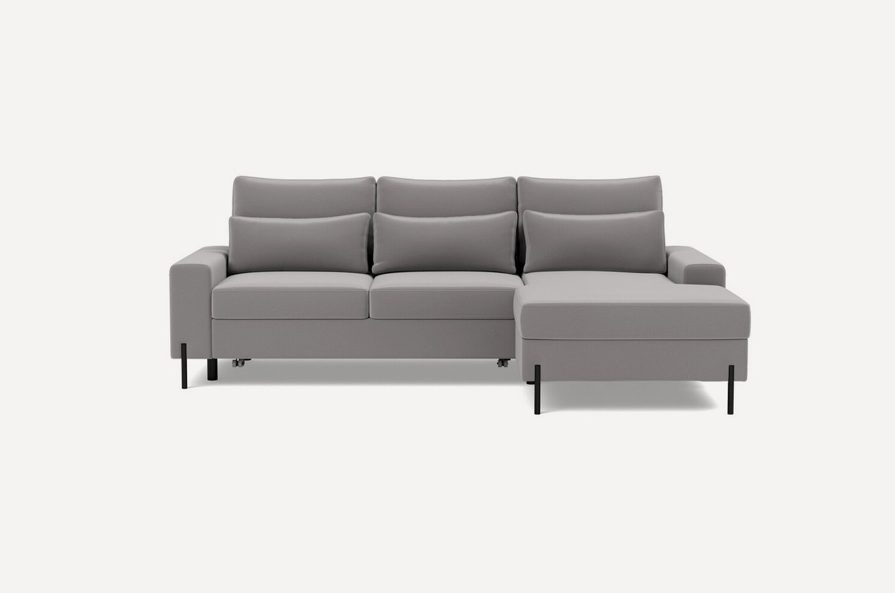 Наиболее популярный механизм, используемый в угловых диванах. «Дельфин» надежен и прост в эксплуатации, а также не требует лишнего пространства для раскладывания – нужно всего лишь выдвинуть нижнюю часть дивана на себя и приподнять ее до спального места. Смотреть все диваны с механизмом дельфин