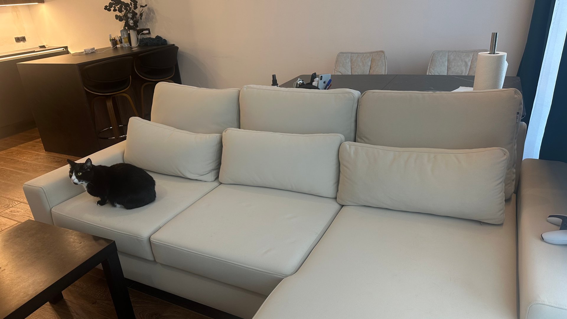Заказали диван выбрав на сайте, честно сказать было страшно заказывать «не пощупав», но рискнули и не пожалели)Идеально подошел по размеру , красивый и довольно большой, что не может не радовать))) сидеть и лежать очень удобно. Единственное, заказали ткань Onli 699, к ней безумно все прилипает, но это мелочи)