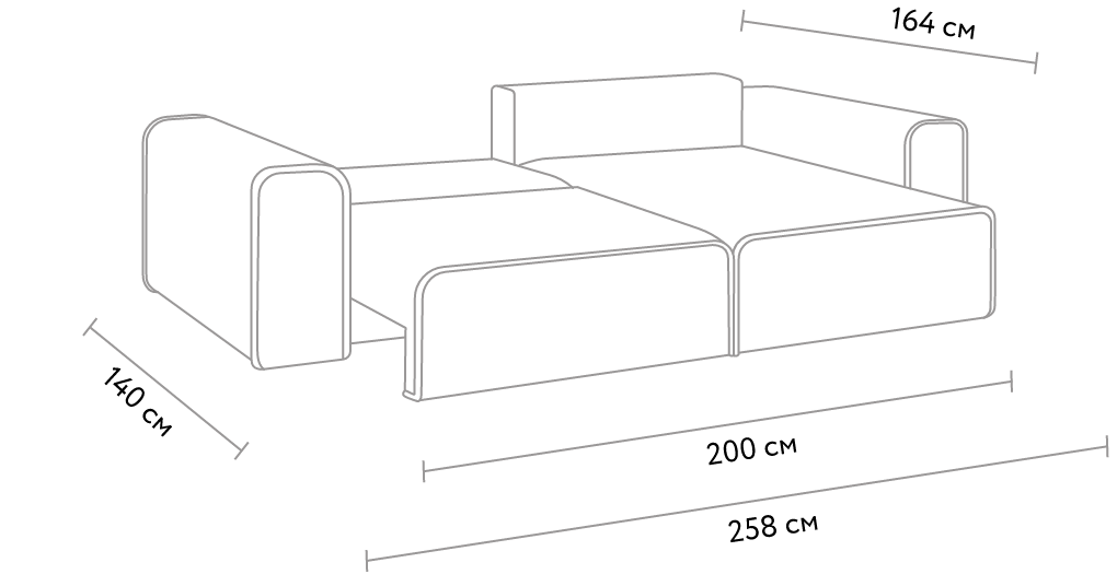 В разложенном виде: Ширина 258 смхГлубина 167 см