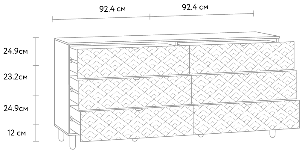 Комод понравился, милый ненавязчивый дизайн. Брала для детской, игрушки в ящики идеально помещаются. Единственный минус, когда ребенок выдвинул сразу несколько ящиков, пока комод был пустой, комод упал из-за отсутствия дополнительной ножки по середине для устойчивости. Надо быть аккуратнее (!). А мы добавим ножки посередине, чтобы избежать подобных историй в будущем, не смотря на то, что дизайн в таком случае несколько постарадает.