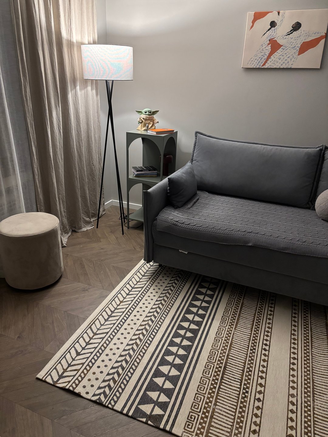 «Вживую» коврик превзошел все ожидания: отлично вписался в интерьер, понравился не только мне, но и котику. Доставили вовремя, все очень четко. Спасибо!