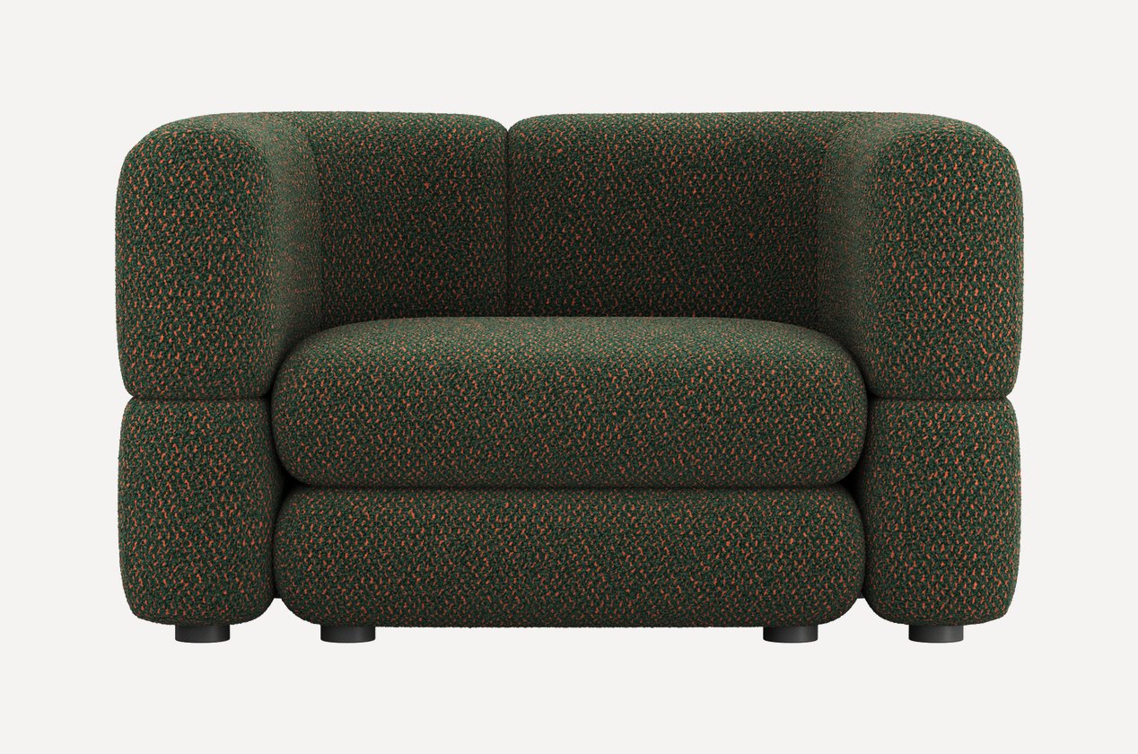 Уникальный дизайн, разработанный Димой Логиновым, сочетает плавные формы и тактильно приятные фактуры. За счет плотной велюровой ткани создается меланжевый эффект и спокойный матовый блеск, который подчеркивает округлые линии мебели.