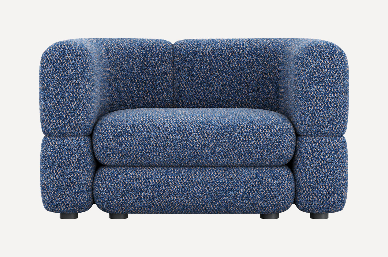 Уникальный дизайн, разработанный Димой Логиновым, сочетает плавные формы и тактильно приятные фактуры. За счет плотной велюровой ткани создается меланжевый эффект и спокойный матовый блеск, который подчеркивает округлые линии мебели.