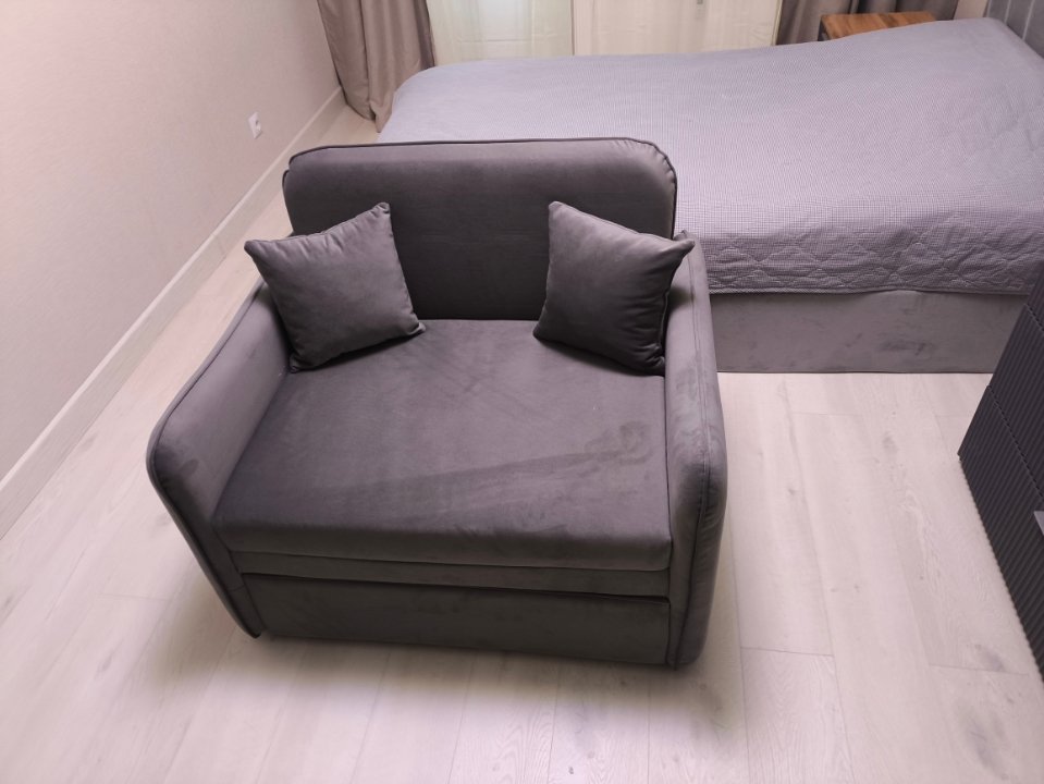 Большое удобное кресло. Приятная ткань. Используем как запасное спальное место, в основном не раскладываем. Собрали сами, без проблем.