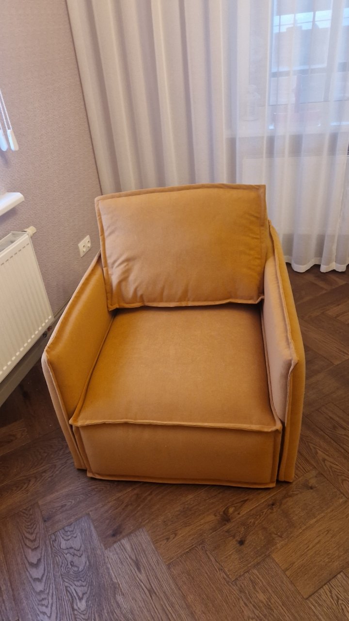 Ольен – смелое решение для современных пространств в стиле лофт. Геометричная форма кресла, а также тонкие подлокотники и окантовка по периметру станут ярким акцентом интерьера. Кресло-кровать доступно в широкой палитре тканей и цветов, подобрать которые можно с помощью онлайн-конструктора на сайте.
