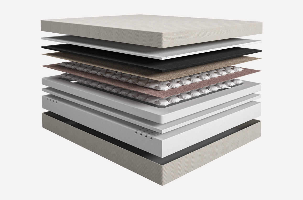 Состав: лен, ППУ высокоэластичный с графитовой крошкой Memory, нанопокеты, ППУ высокоэластичный Memory Blue, пенополиуретан