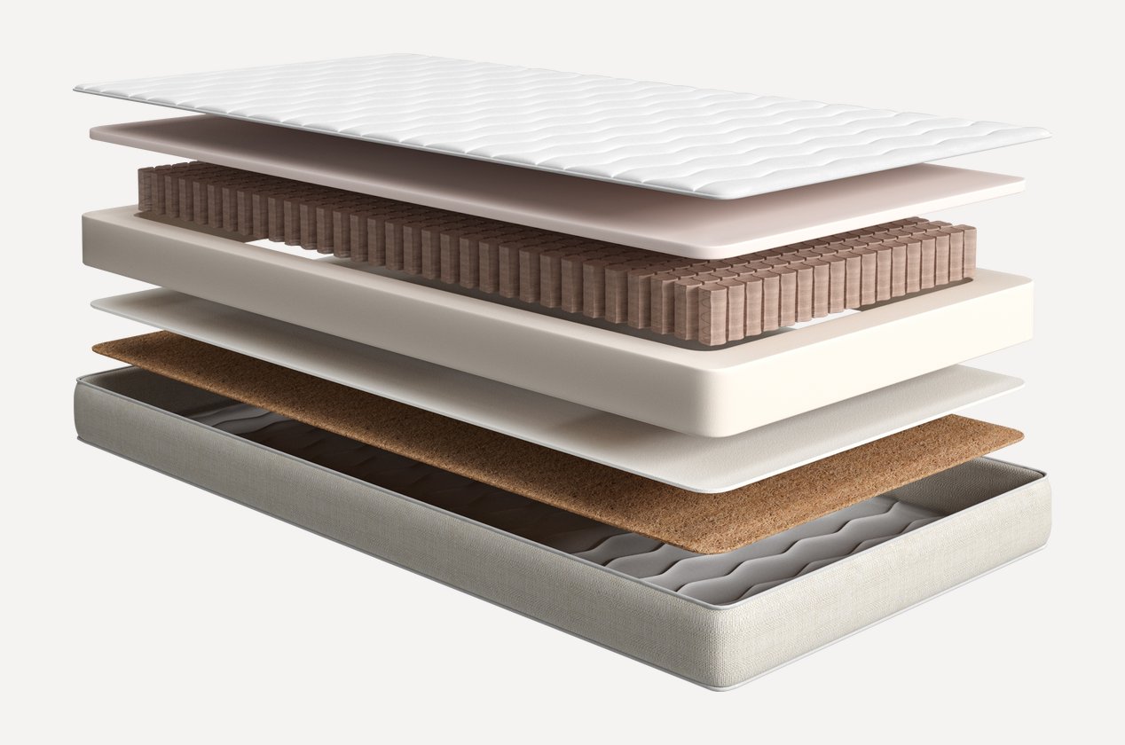 Состав: хлопковый войлок, натуральное кокосовое полотно, высокоэластичная пена Basic Foam, независимый пружинный блок Mini