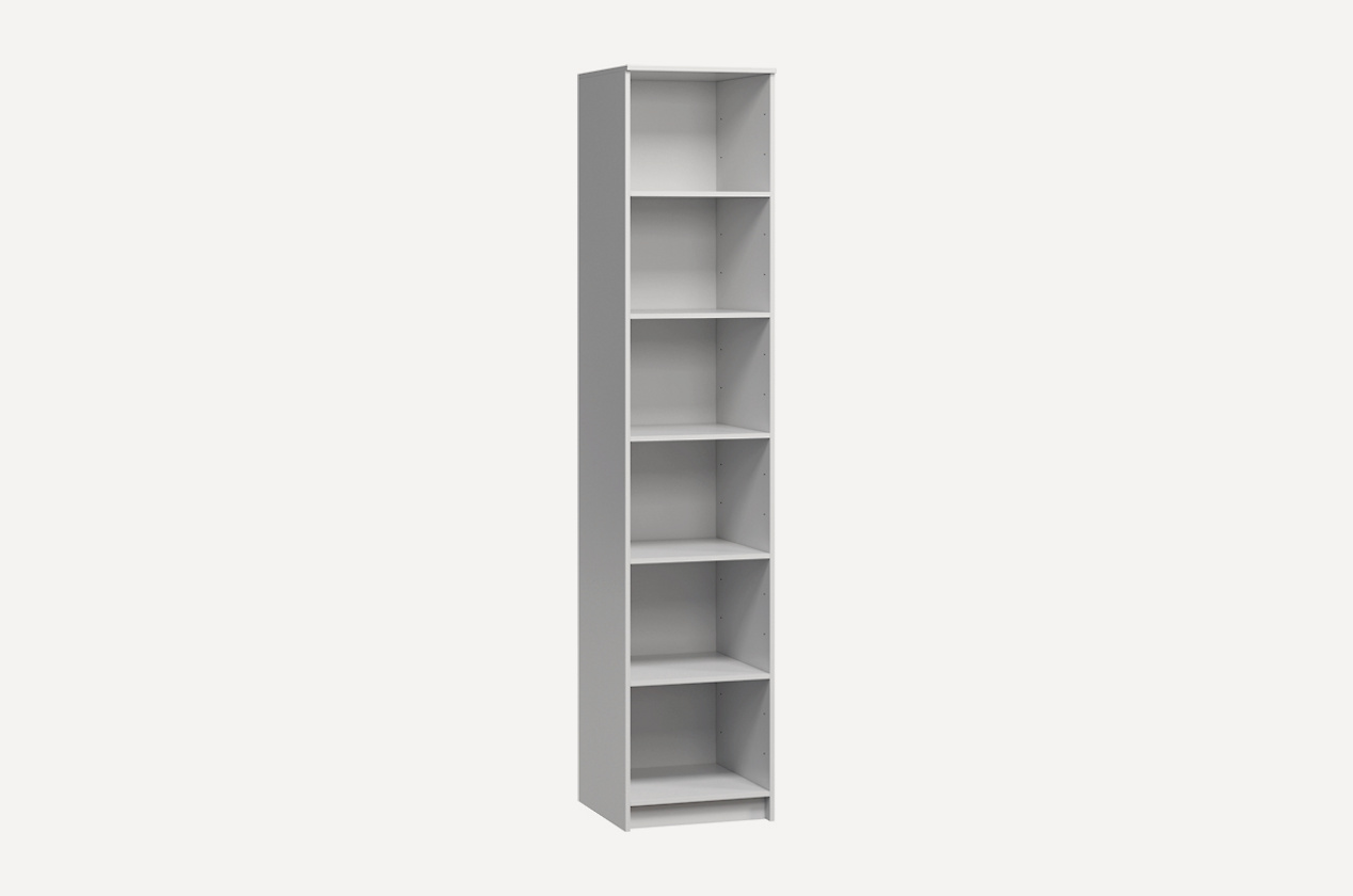 Универсальный модуль «Дели-1» – один из самых часто используемых элементов гардеробной. Оптимальная ширина и высота отсеков помогает поддерживать порядок на открытых полках. Модуль изготовлен из ламинированной ДСП 16 мм, задняя стенка – ДВП нейтрального оттенка.