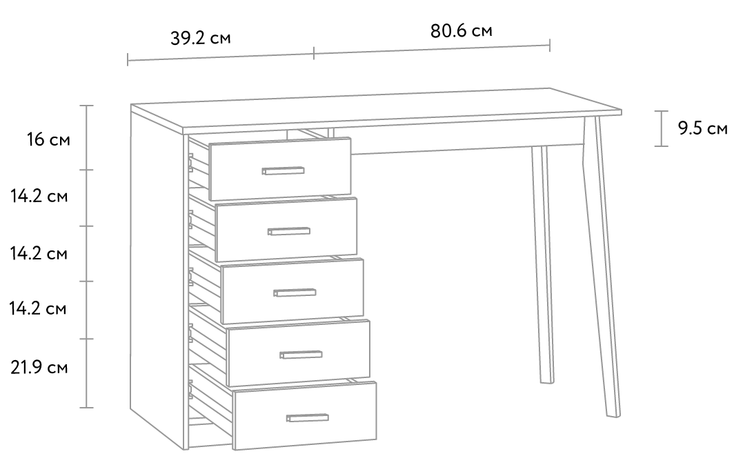 Стол превзошёл наши ожидания - по размерам и функционалу прямое попадание. Собирали самостоятельно, не сложно. Высота от пола 81 см, мы специально заказали ящики справа, так как дочери правши. Рекомендую.