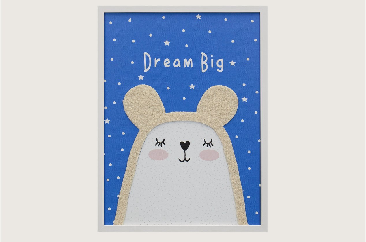 Минималистичный постер с объемными элементами из ткани отличное дополнение для интерьера детской комнаты. Забавные и милые герои внесут нужные стилистические акценты и придадут настроение детской. Картина продается в раме и упакована в картонные уголки и пленку, что позволяет доставлять картину без повреждений.