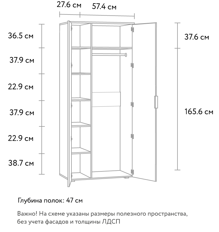Цвет задней стенки:Белый ЛХДФ Дверная система: распашные двери