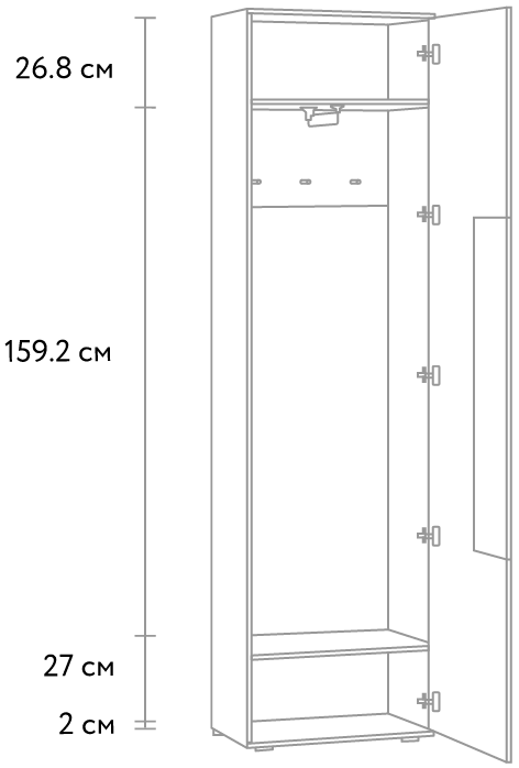 Распашной шкаф «Фиджи-1» – вместительная модель с оригинальным дизайном. Эргономичное наполнение представлено антресолью, полкой и держателями для одежды и тремпелей. Шкаф станет стильным акцентом интерьера в скандинавском, лофтовом или рустик-стиле. Изделие гармонично комбинируется с моделями серии «Фиджи» или другими мебельными комплектами.