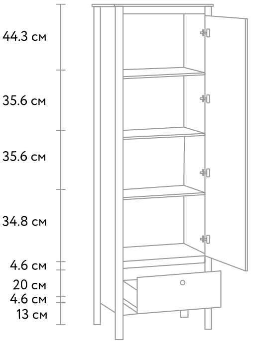 Компактный и легкий, на первый взгляд, шкаф предусматривает грамотное пространство для хранения, что делает его подходящим для помещений любого размера. Распашная створка при сборке может быть установлена на правую или левую сторону.
