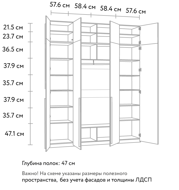 ВАЖНО! При глубине шкафа-купе менее 60 см / распашного шкафа менее 50 см, устанавливается выдвижная штанга.