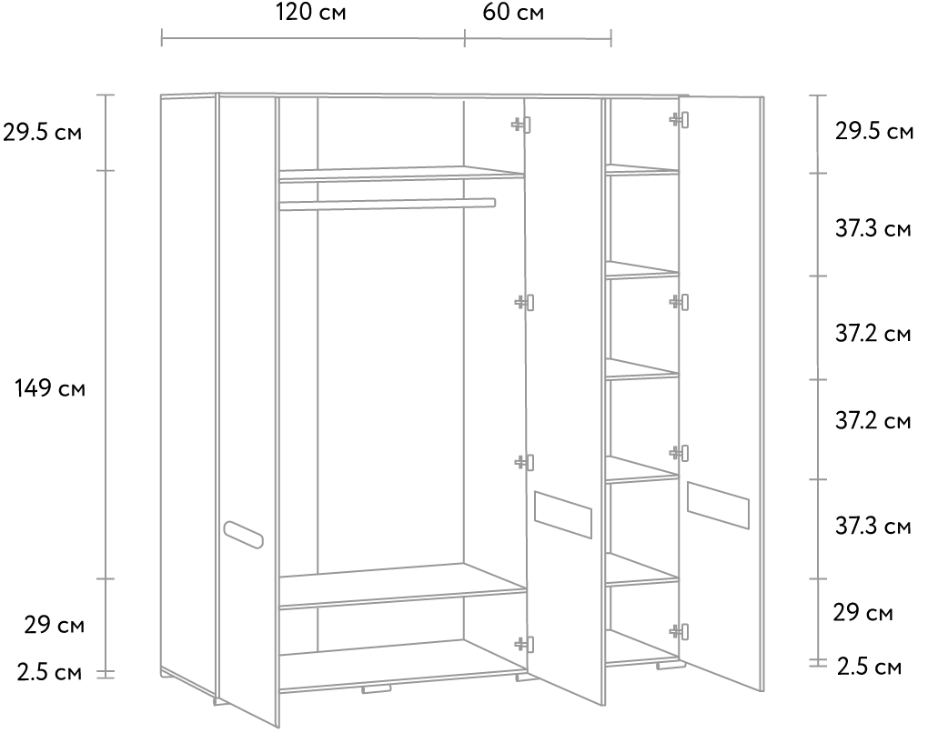 Распашной шкаф «Лион-3» – элегантное и эргономичное решение для интерьера в модерновом, скандинавском или фьюжн стиле. Вместительная модель позволит полноценно организовать хранение на небольшой площади и подойдет как для просторных, так и для компактных комнат. Благодаря лаконичному дизайну, шкаф легко сочетается с другими предметами мебели.