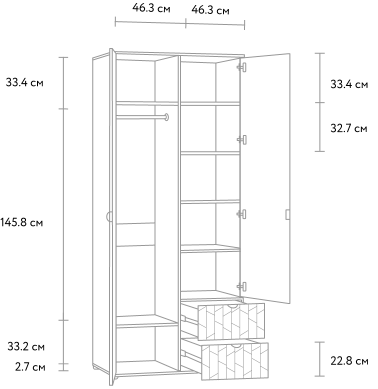 Размеры: Длина 93 смхШирина 50 смхВысота 215 см