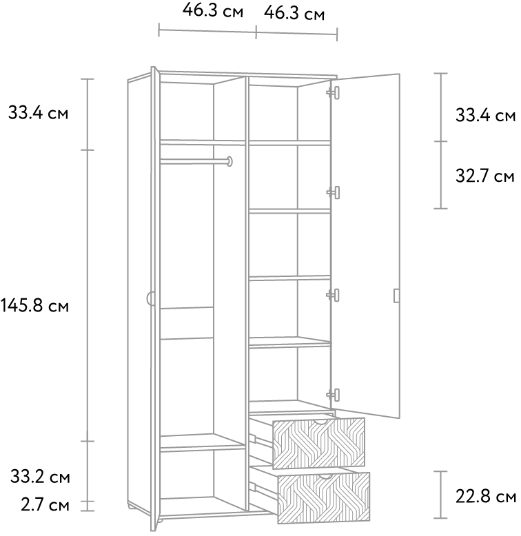Размеры: Длина 93 смхШирина 50 смхВысота 215 см