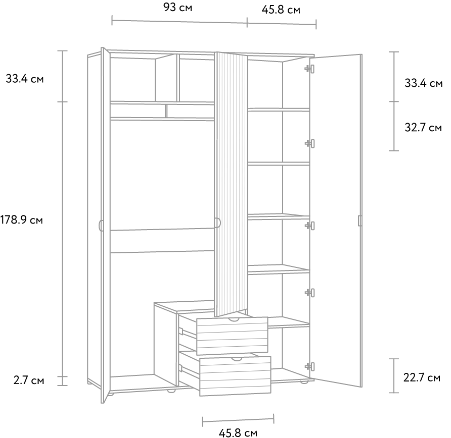 Распашной шкаф Монблан 3-139x215 Линии Графитовый